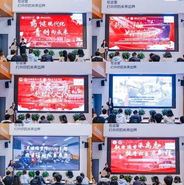 活动开始,孙林书记致欢迎辞。随后,我校国际医药商学院3支队伍分别以《药健现代化,青创向未来》《药眼寻脉,青春筑方》《擎青春之旗,赴时代之约》为题进行展示,东南大学吴健雄学院以《服务践行青春,益路同行》为题、南京航空航天大学能源与动力学院以《以赛促学造赛车,学用相长强支部》为题、河海大学大禹学院以《驭电逐梦承禹志,挺膺担当启新程》为题进行分享。各支部立足青年视角,以丰富多彩的形式展现了新时代青年为中国式现代化挺膺担当的积极态度,现场气氛热烈、掌声不断。活动最后,陈蓉部长、高原书记先后对此次活动进行点评,她们高度赞赏了本次活动,对参加展示的团支部给予高度肯定。