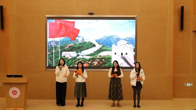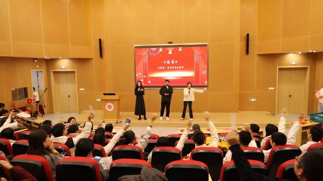 各系、中心准备的节目精彩纷呈。学工团队以活力四射的舞蹈《顺启新年》拉开帷幕,瞬间点燃全场热情;新入职教师代表的《我们都是追梦人》,唱出了青春的理想与担当;工商管理学系教师代表一曲《真心英雄》,以温暖旋律致敬平凡中的不凡;经济贸易系教师代表带来《明天会更好》,寄托对未来的共同期盼;药事管理系教师代表的《后来》,以经典旋律唤起共鸣,传递坚韧与希望;公共管理系教师代表演绎的《如愿》,动情而真挚,表达了对前辈的致敬与对未来的期待;实验中心与院办合作的互动游戏《团结计量——步步高升》,设计巧妙、趣味十足;最后,学院领导班子合唱《我和我的祖国》,铿锵歌声凝聚人心、鼓舞斗志。