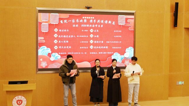 金蛇摆尾辞旧岁,骏马奔腾赴新程。12月31日,国际医药商学院于经管文楼111报告厅举办“商院一家齐欢聚,携手共进谱新篇”2026年教职工迎新年联欢会。学院教职工齐聚一堂,共迎新年。活动由程纪扬、代展菁、 马晶晶、王煜昊四位新入职教师共同主持。