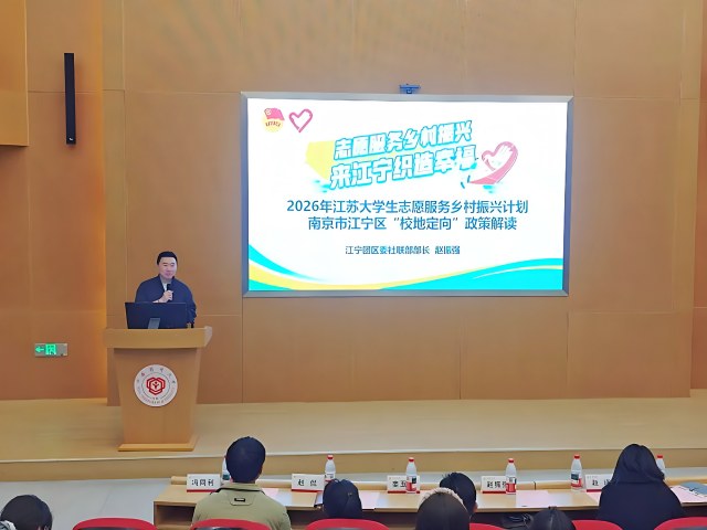 活动现场,赵振强围绕江苏大学生志愿服务乡村振兴计划展开详细介绍,从政策导向、岗位规划、职责范畴到保障体系等多维度进行解读,强调该项目通过校地定向对接,为青年提供基层治理、产业帮扶等实践平台。